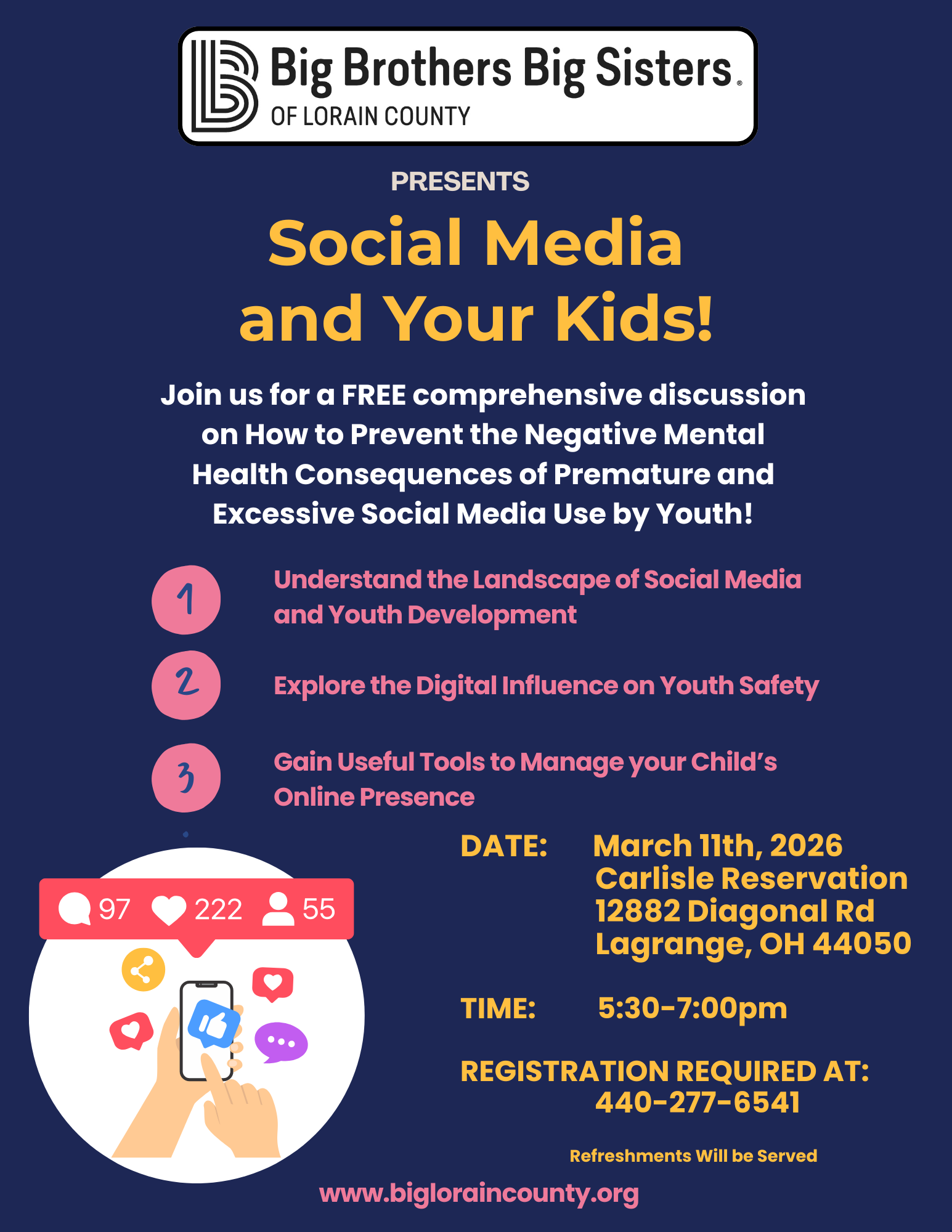 Please join us! YOU can make a difference in a child’s life. MENTOR. DONATE. SPONSOR A FUN ACTIVITY. PARTICIPATE IN EVENTS. REFER A CHILD. With your help, Lorain County’s children can achieve great things. To learn more, please browse our website further or call us at (440) 277-6541.